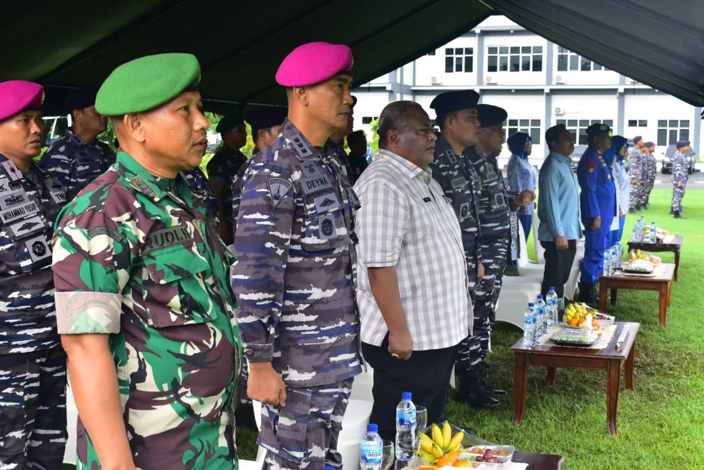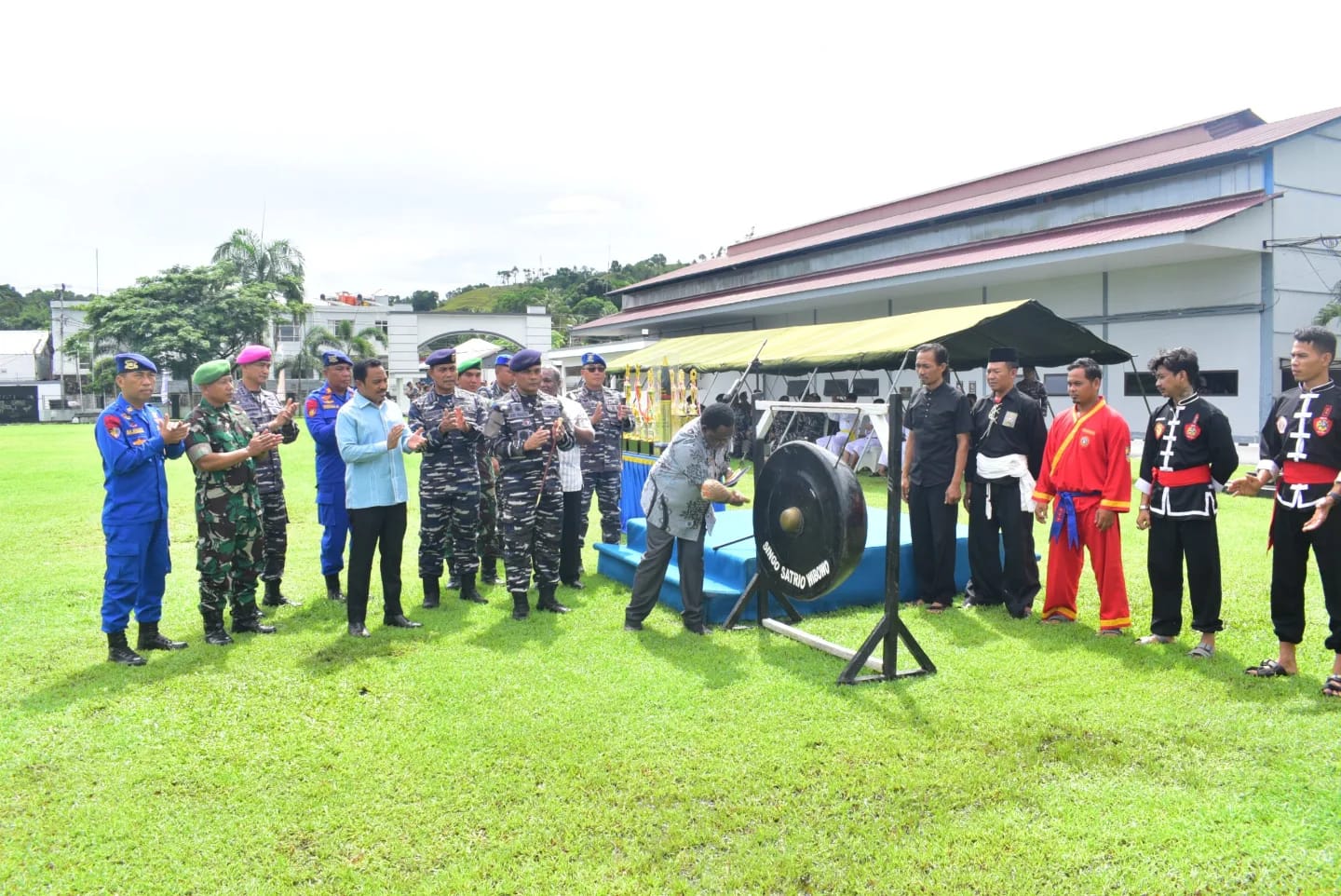 TNI AL, Dispen Kormar Sorong. Aspers Danpasmar 3 Kolonel Mar Deyna Hakim Galuh Tirtanegara, S.I.Kom., CRMP., menghadiri upacara pembukaan Tournament Pencak Silat Danlantamal XIV CUP 2024 di lapangan upacara Mako Lantamal XIV, Jl. Bubara, No.01, Kota Sorong, Papua Barat Daya. Kamis (02/05/2024).