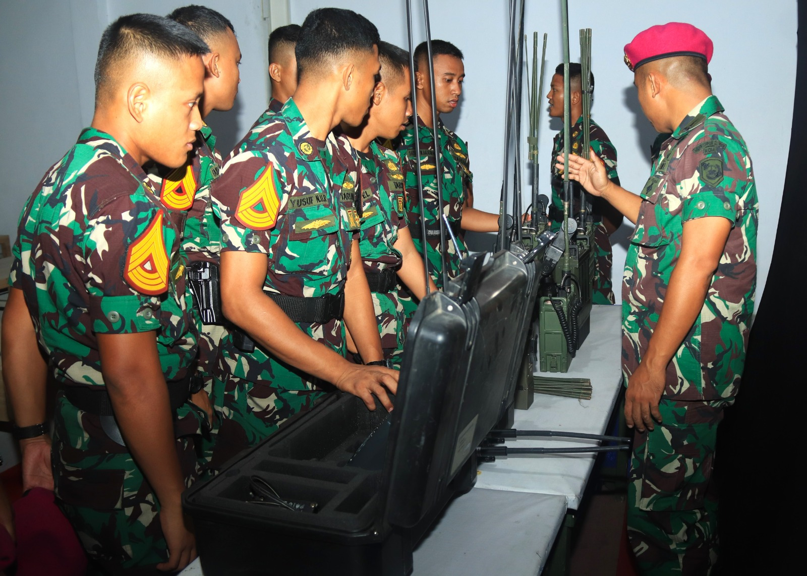 Selain itu Wadanyon juga memberikan penjelasan singkat terkait kesenjataan alat komunikasi radio yang dimiliki oleh Batalyon Komlek 2 Mar diantaranya radio jarak sedang yaitu radio Barrett 2040, radio jarak dekat yaitu radio RF 20 Dicom, radio jarak pendek yaitu radio AN PRC 999 KE/C, Repeater serta radio Direction. Para Taruna terlihat antusias dan tertarik serta muncul banyak lontaran pertanyaan dari mereka saat melihat langsung alat komunikasi yang sudah digelar di ruang kelas tersebut.