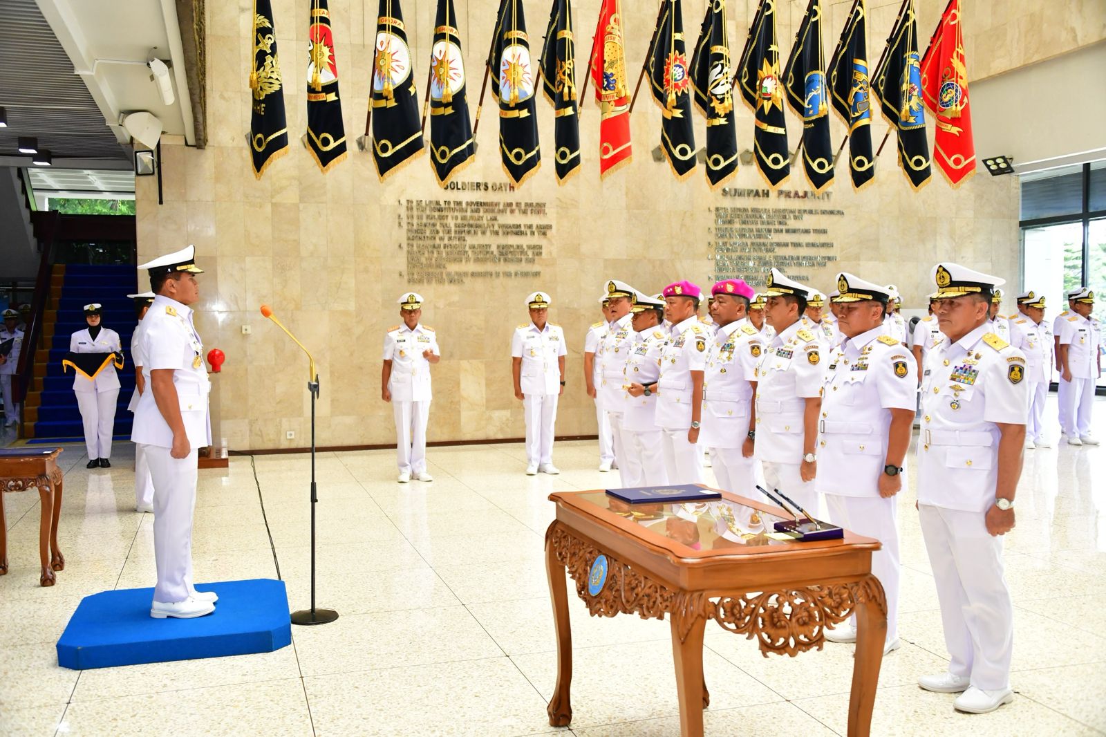 Acara serah terima jabatan tersebut dipimpin langsung oleh Kepala Staf TNI Angkatan Laut (Kasal) Laksamana TNI Dr. Muhammad Ali, S.E., M.M., M.Tr.Opsla. Adapun pejabat yang melaksanakan serah terima jabatan antara lain Asrena Kasal diserah terimakan dari Laksda TNI Edwin, S.H., M.Han., M.H. kepada Laksda TNI Achmad Wibisono, S.E., CHRMP., Jabatan Aspotmar Kasal diserah terimakan dari Mayjen TNI (Mar) Markos, S.E., kepada Mayjen TNI (Mar) Dr. Hermanto, S.E., M.M., M.Tr.Opsla., CSBA., CTMP. Jabatan Askomlek Kasal diserah terimakan dari Laksda TNI Dono Herbowo, S.T., M.Tr.(Han)., CHRMP., kepada Laksma TNI Tri Harsono, S.T., CHRMP., CIQnR., CIQaR., M.Tr.Opsla., dan Jabatan Kadiskomlekal diserah terimakan dari Laksma TNI Tri Harsono, S.T., CHRMP., CIQnR., CIQaR., M.Tr.Opsla., kepada Laksma TNI Benny Febri, M.M., M.Tr.Opsla.