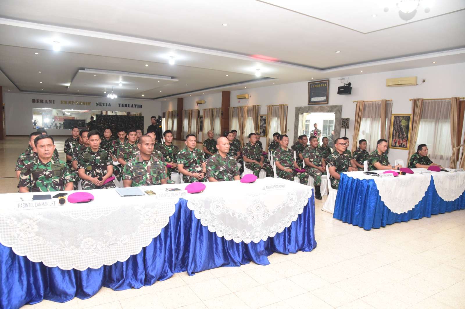 "Dalam hal ini, urgensi kita adalah bidang penyelidikan, pengamanan dan penggalangan yang harus ditingkatkan serta berupaya maksimal tiap personel intelijen untuk membidangi hal tersebut. Sehingga dari penggalian informasi, data, yang bersifat operasi terlebih operasi tempur akan terus dapat pembaharuan secara up to date. Dan diharapkan para Prajurit Korps Marinir, akan selalu siap bertugas di manapun berada, tentunya dengan didukung adanya kesiapan informasi akurat, dan sistematis dari intelijen kita". Ucap Dankormar.