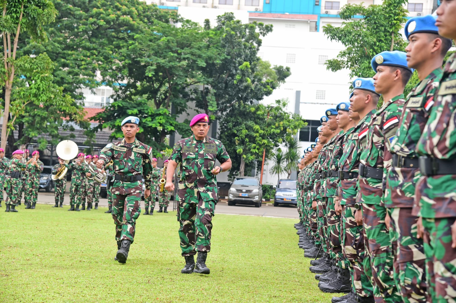 TNI AL. Dispen Kormar (Jakarta) Komandan Pangkalan Korps Marinir Jakarta (Danlanmar Jakarta) Kolonel Marinir Imron Safei, S.E., M.Tr.Hanla, M.M. Menghadiri Upacara Penerimaan Satgas Yonmek TNI Konga 23-Q UNIFIL Lebanon di Lapangan Markas Komando Korps Marinir (Mako Kormar), Jalan Prajurit KKO Usman dan Harun, No.40 Kwitang, Jakarta Pusat. Jum'at (15/03/2024).