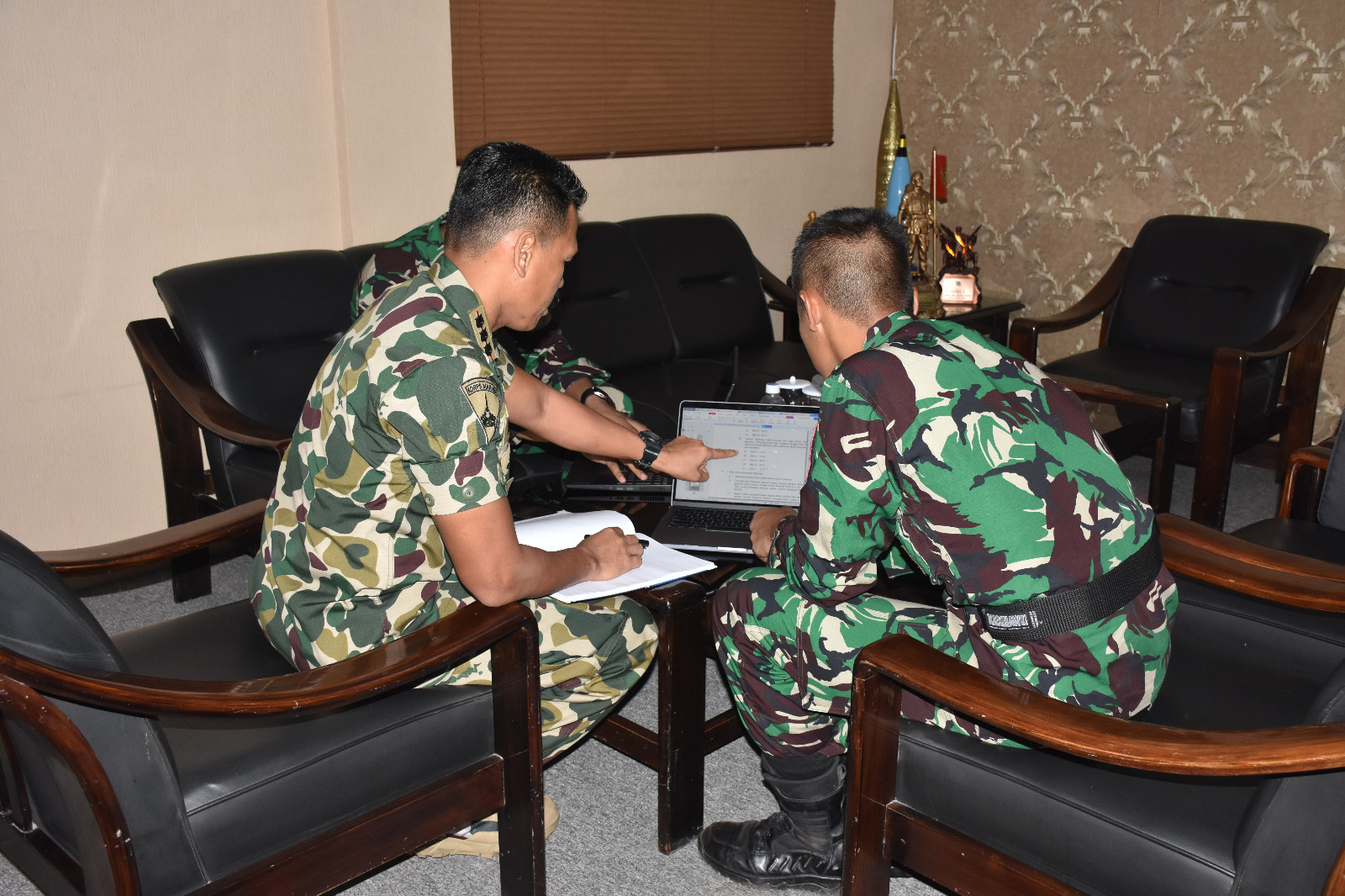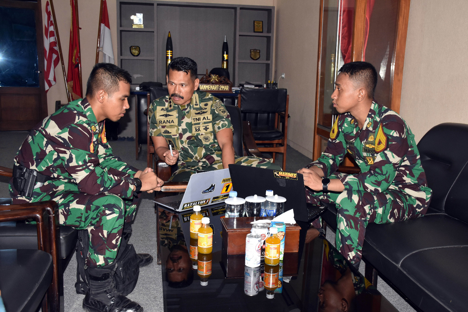 TNI AL. Dispen Kormar (Surabaya). Komandan Resimen Artileri 2 Marinir Kolonel Marinir Rana Karyana, S.E.,M.Tr.Hanla.,M.M.,CRHMP terima Taruna Akademi TNI Angkatan Laut (AAL) Tingkat IV Korps Marinir Angkatan ke-69 untuk bimbingan skripsi di ruang kerja Danmenart 2 Marinir Kesatrian Marinir Soetedi Senaputra Surabaya, Rabu (24/04/2024).