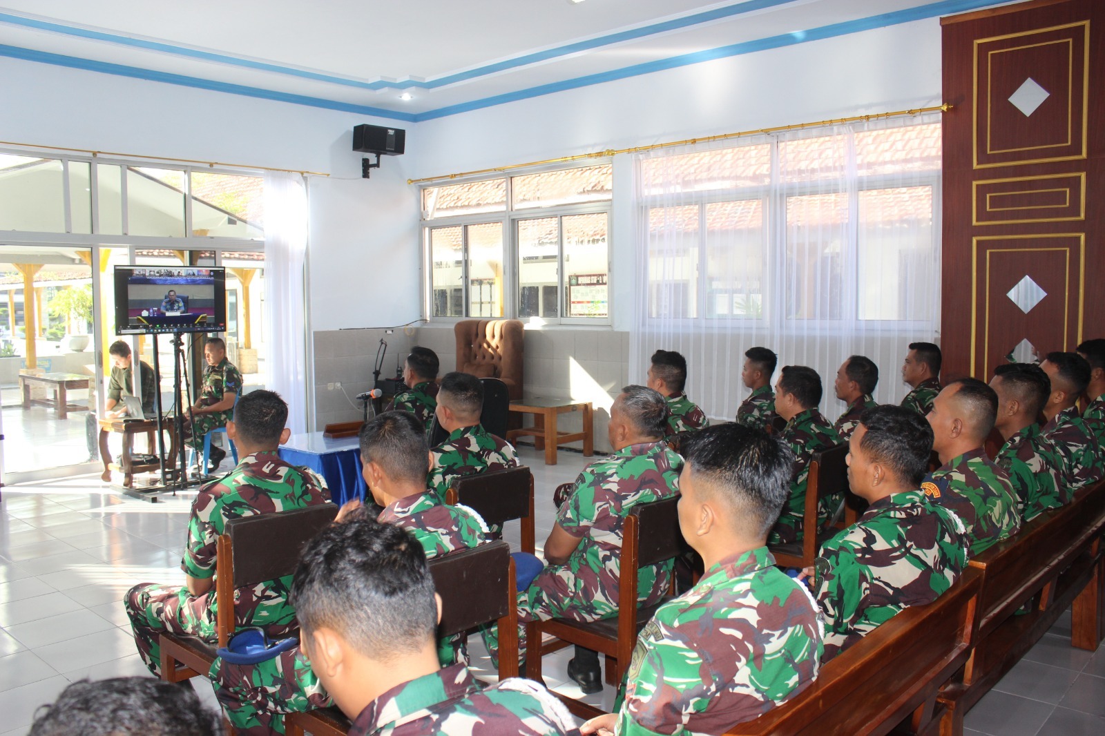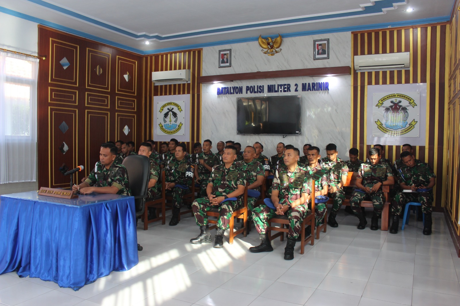 Danyon POM 2 Marinir Dan Prajuritnya Mengikuti Pengarahan Danpuspomal Melalui Vicon