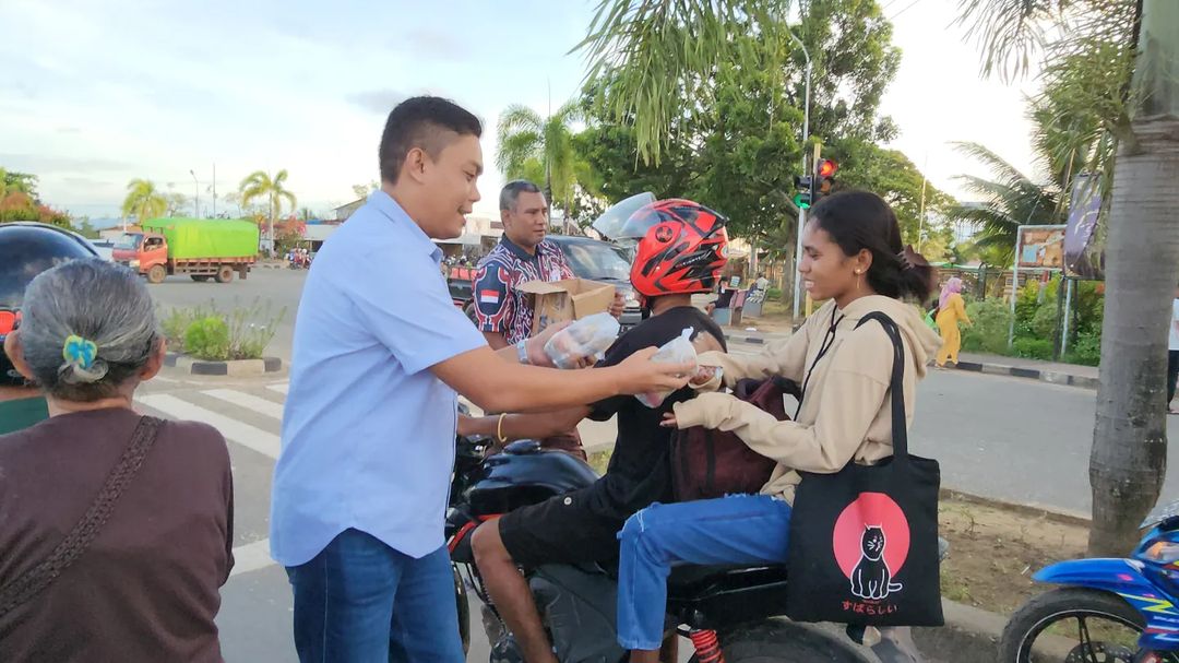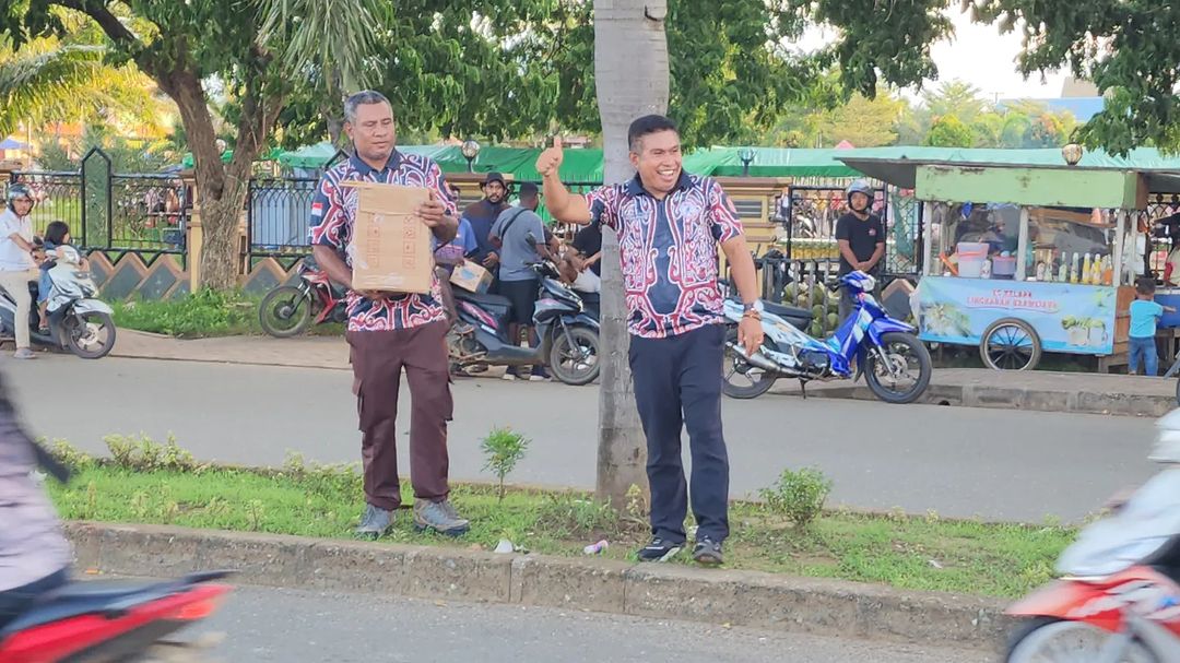 TNI AL, Dispen Kormar (Merauke.) Komandan Batalyon Marinir Pertahanan Pangkalan XI Merauke Mayor Mar Deni Kusmana bersama Ketua Umum Pengda Muaythai Merauke Bapak Elias Mite S.STP, M.AP serta seluruh anggota Pengda Muaythai melaksanakan pemberian takjil kepada masyarakat pengguna jalan raya yang bertempat di Monumen Libra, Jl. Brawijaya, Distrik Merauke, Kab. Merauke, Papua Selatan. Sabtu (06/04/2024).