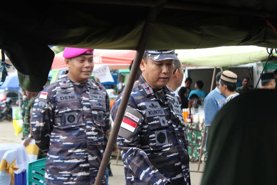 TNI AL, Dispen Kormar (Merauke). Komandan Batalyon Marinir Pertahanan Pangkalan (Yonmarhanlan) XI Mayor Mar Deni Kusmana menghadiri kegiatan Bazar TNI secara serentak, dibuka oleh  Panglima TNI Jenderal TNI Agus Subiyanto diwakili Kepala Staf Umum (Kasum) TNI Letjen TNI Bambang Ismawan, dalam rangka menyambut Hari Raya Idul Fitri 1445 H/2024 M melalui Vicon, bertempat di Halaman Masjid Raya Al-Aqsha, Jl. Lingkar Brawijaya, Distrik Merauke, Kab. Merauke, Papua Selatan. Selasa (02/03/2024).