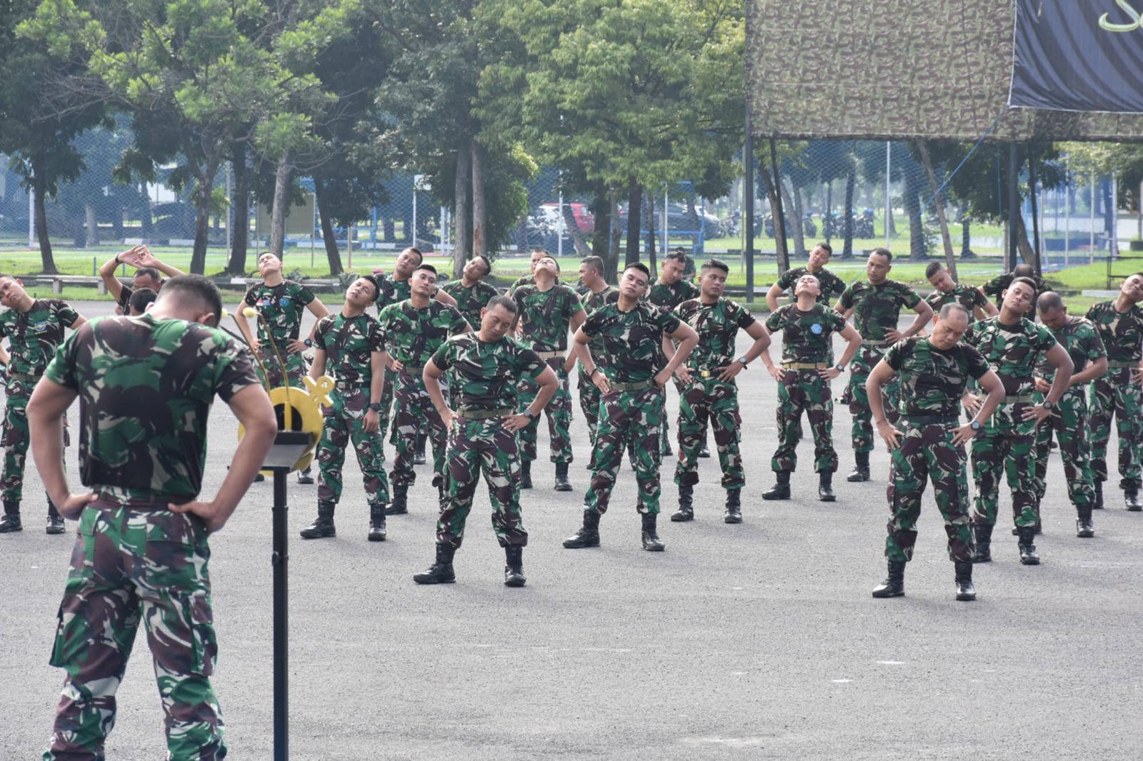 TNI AL, Dispen Kormar (Sidoarjo). Dalam semangat kebersamaan dan silaturahmi, Danyonif 5 Mar Letkol Mar Ahmad Fauzi memimpin prajuritnya mengikuti Halal Bihalal seluruh Prajurit dan PNS Brigade Infanteri 2 Marinir di lapangan apel Bhumi Marinir Gedangan, Sidoarjo, Jawa Timur. Rabu (17/04/2024).