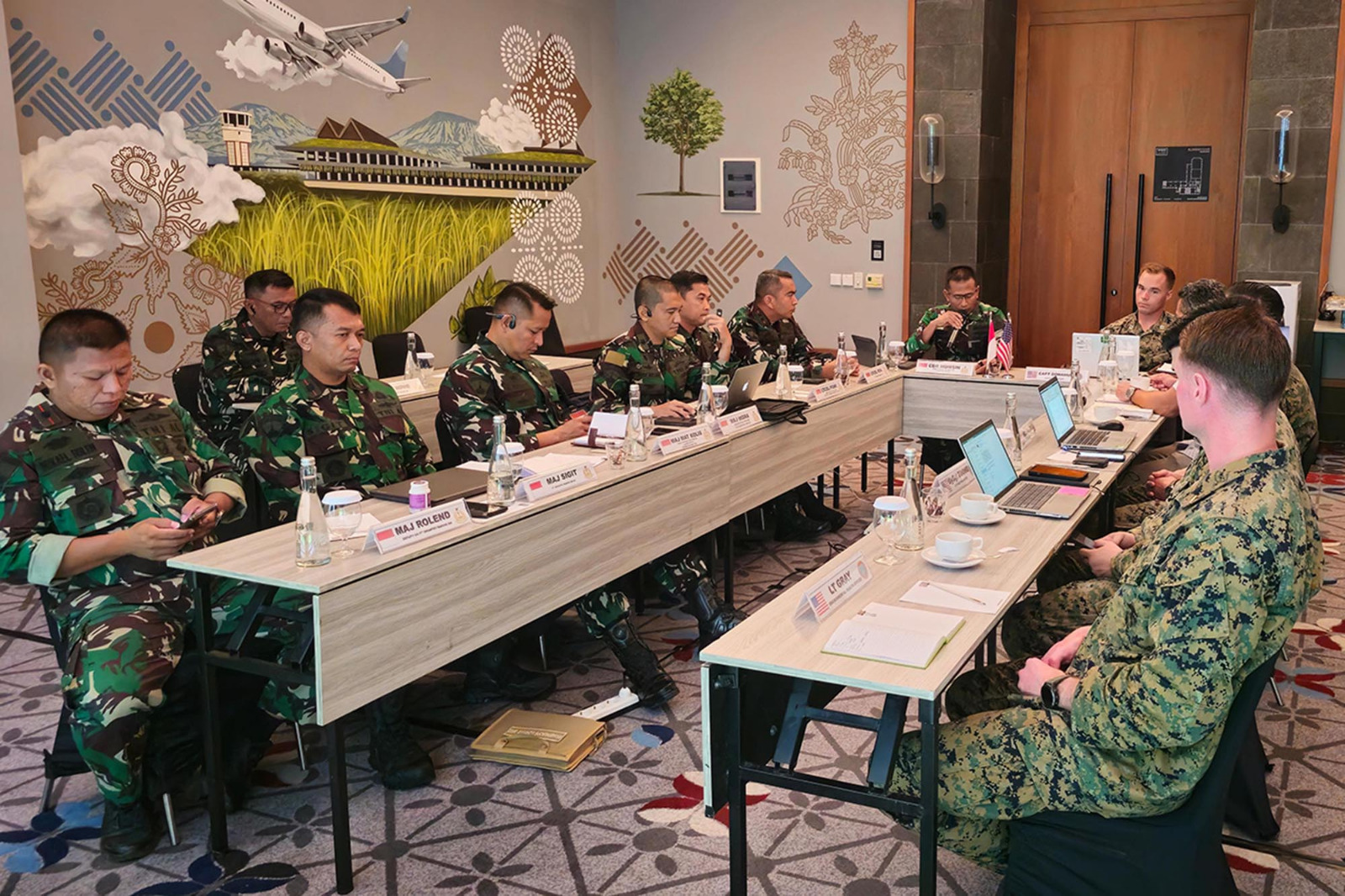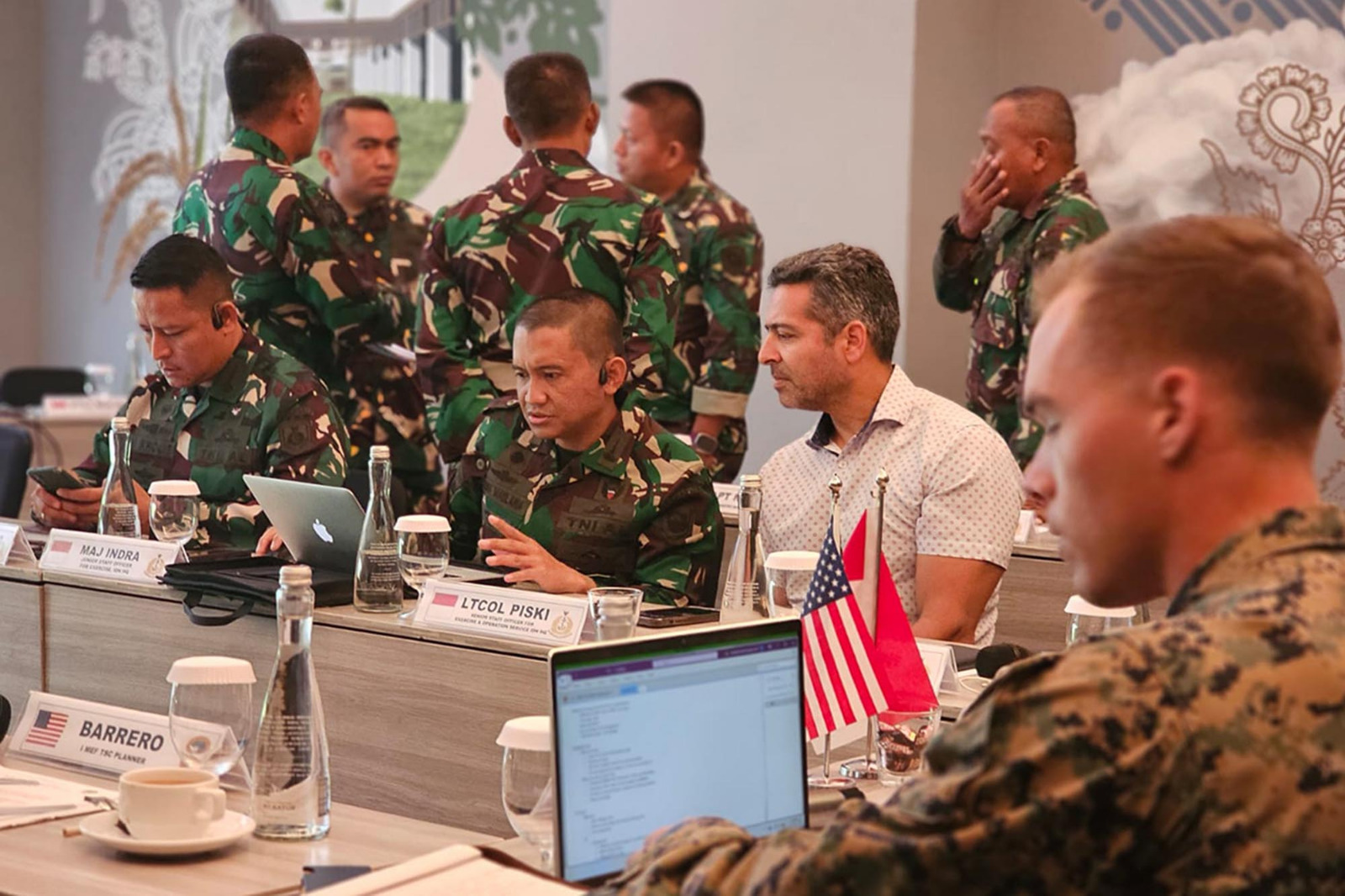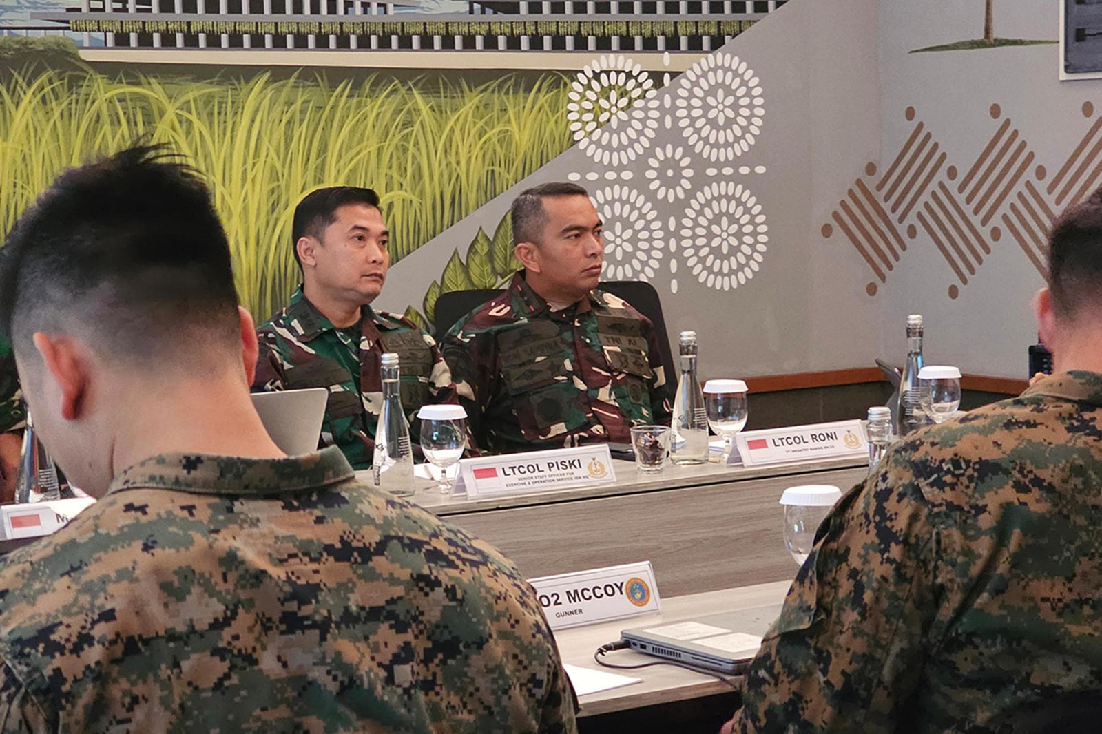 TNI AL, Dispen Kormar (Banyuwangi). Dalam rangka persiapan Latihan Bersama (Latma) Platoon Exchange TA 2024, Komandan Batalyon Infanteri 1 Marinir Letkol Marinir Roni Saputra, M.Tr.Opsla., mengikuti Meeting bersama U.S Marine Corps (USMC) di Hotel Kokoon Banyuwangi, Jawa Timur. Rabu (24/04/2024).