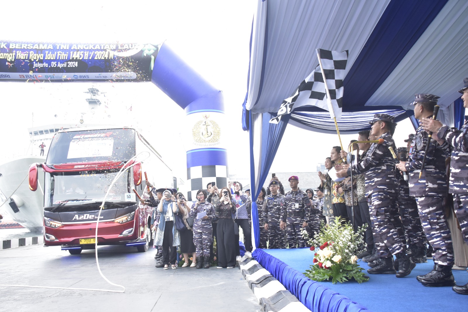 KOMANDAN KORPS MARINIR HADIRI PELEPASAN MUDIK GRATIS BERSAMA TNI AL