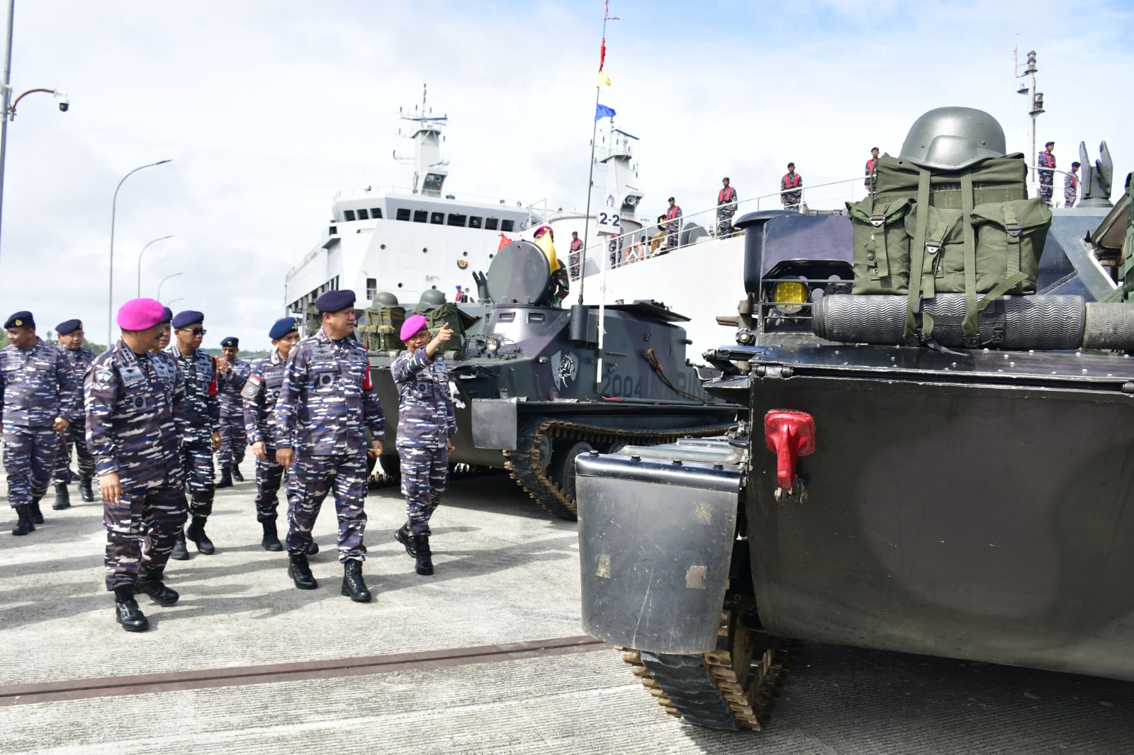 TNI AL, Dispen Kormar Sorong. Komandan Pasmar 3 Brigjen TNI (Mar) Sugianto, S. Sos., M.M., menghadiri Apel Gelar Pasukan Satuan Tugas (Satgas) Trisila 2024 Tahap II di dermaga Mako Koarmada III, Distrik Salawati, Kelurahan Majener, Kabupaten Sorong, Papua Barat Daya. Kamis (25/04/2024).