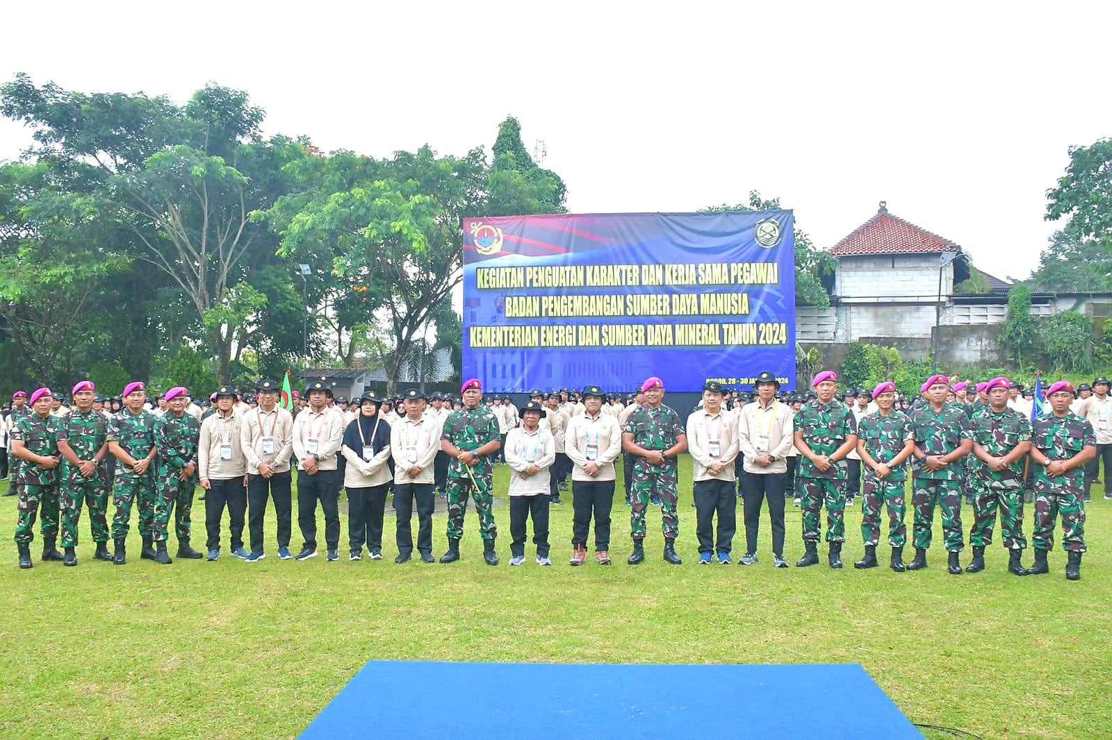Dispen Kormar,  TNI Angkatan Laut (Jakarta). Wakil Komandan Korps Marinir (Wadan Kormar) Brigjen TNI (Mar) Suherlan membuka secara langsung kegiatan penguatan karakter dan kerja sama pegawai Badan Pengembangan Sumber Daya Manusia Kementerian Energi dan Sumber Daya Mineral (ESDM) Republik Indonesia Tahun 2024 yang digelar  di Taman Bukit Palem Resort Pancawati, Kec. Caringin, Kab. Bogor, Jawa Barat, Minggu (28/01/2024).