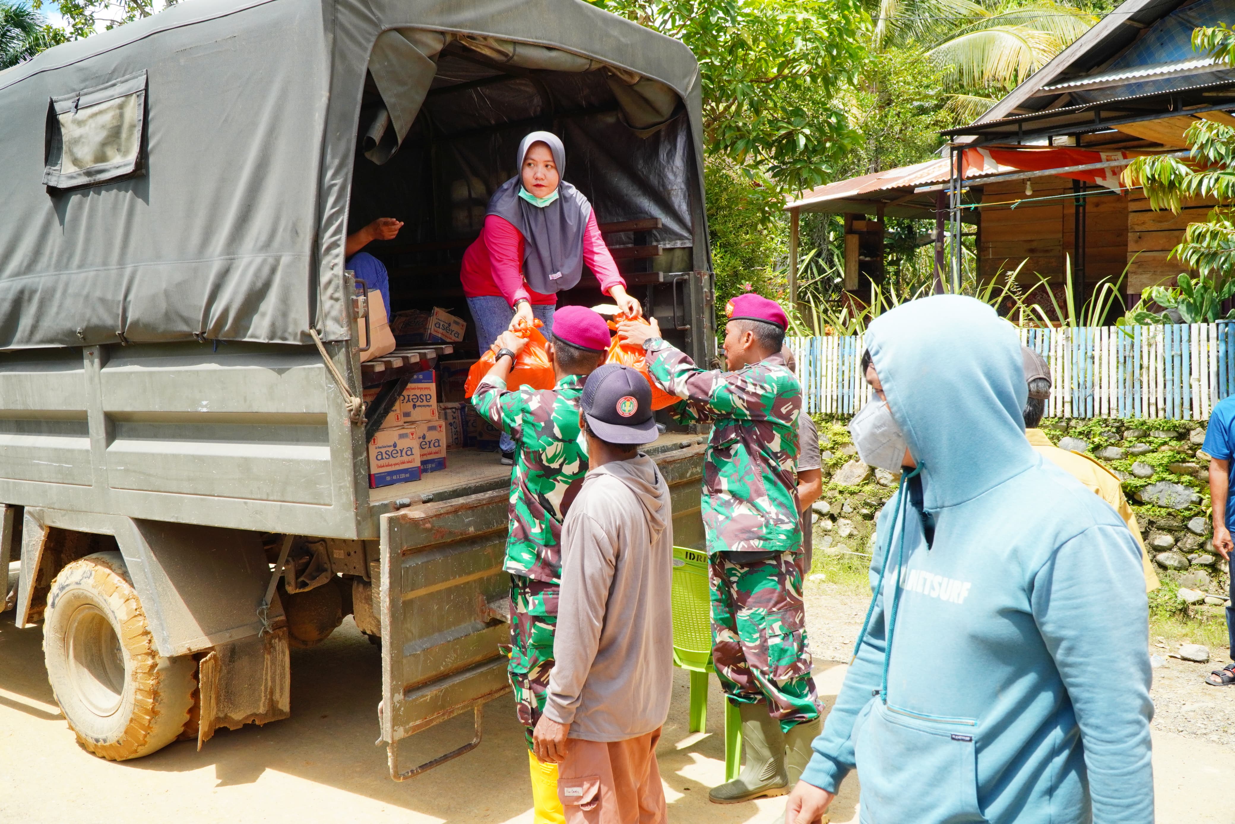 Bantuan logistik berupa paket makanan dan obat-obatan disalurkan oleh Prajurit Korps Marinir bersama dengan TNI Polri dan Basarnas kepada masyarakat yang terdampak banjir dan longsor di Kecamatan Suli, Kecamatan Bajo, dan Kecamatan Latimojong.