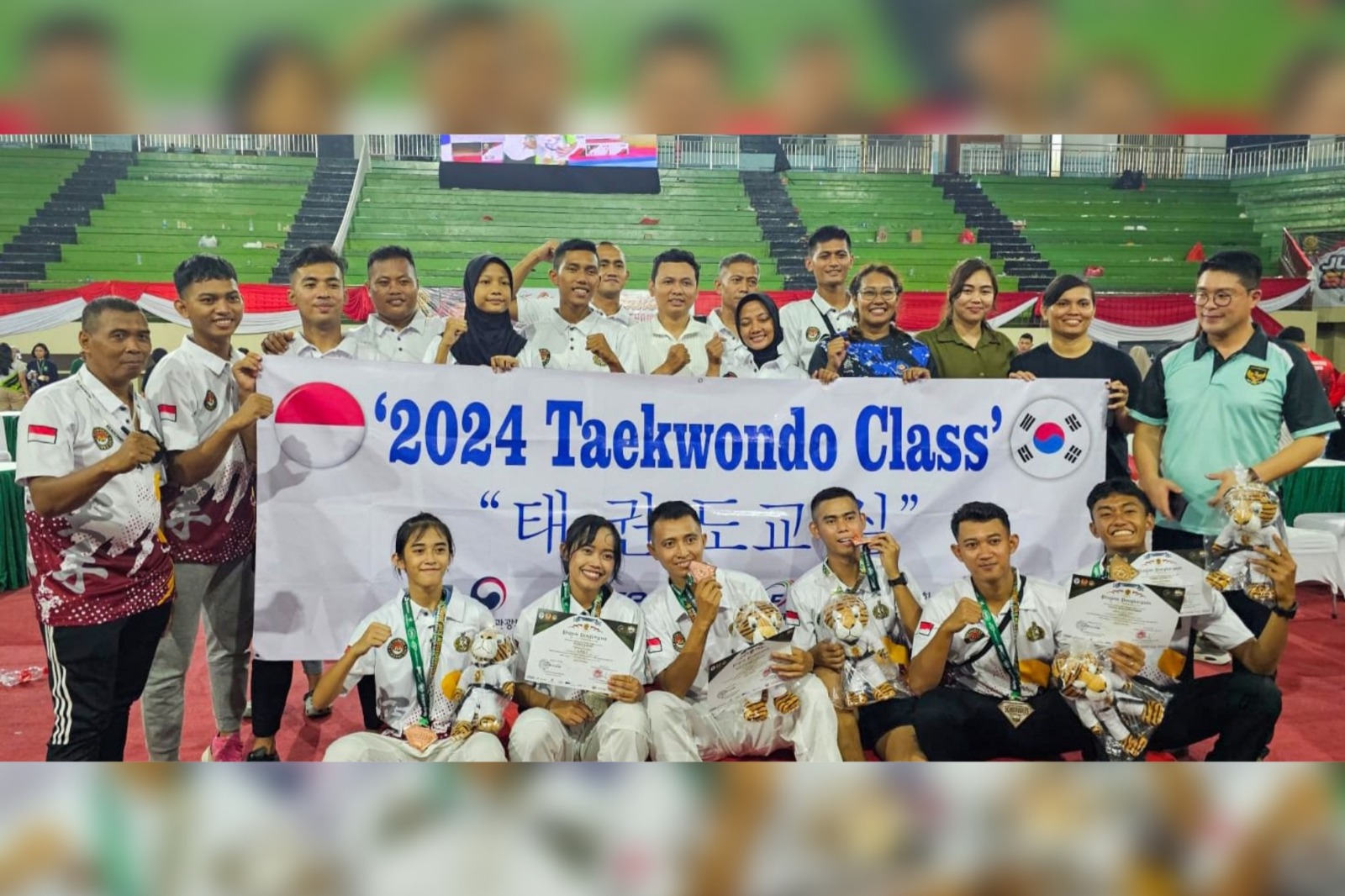 TNI AL, Dispen Kormar (Jakarta) Prajurit Batalyon Infanteri 1 Marinir berhasil meraih prestasi dalam Kejuaraan Nasional Taekwondo Panglima Kostrad Cup Tahun 2024, di Gelanggang Olahraga Ciracas, Jl. Raya Jakarta-Bogor, Ciracas, Kec. Ciracas, Jakarta Timur. Minggu (12/05/2024)