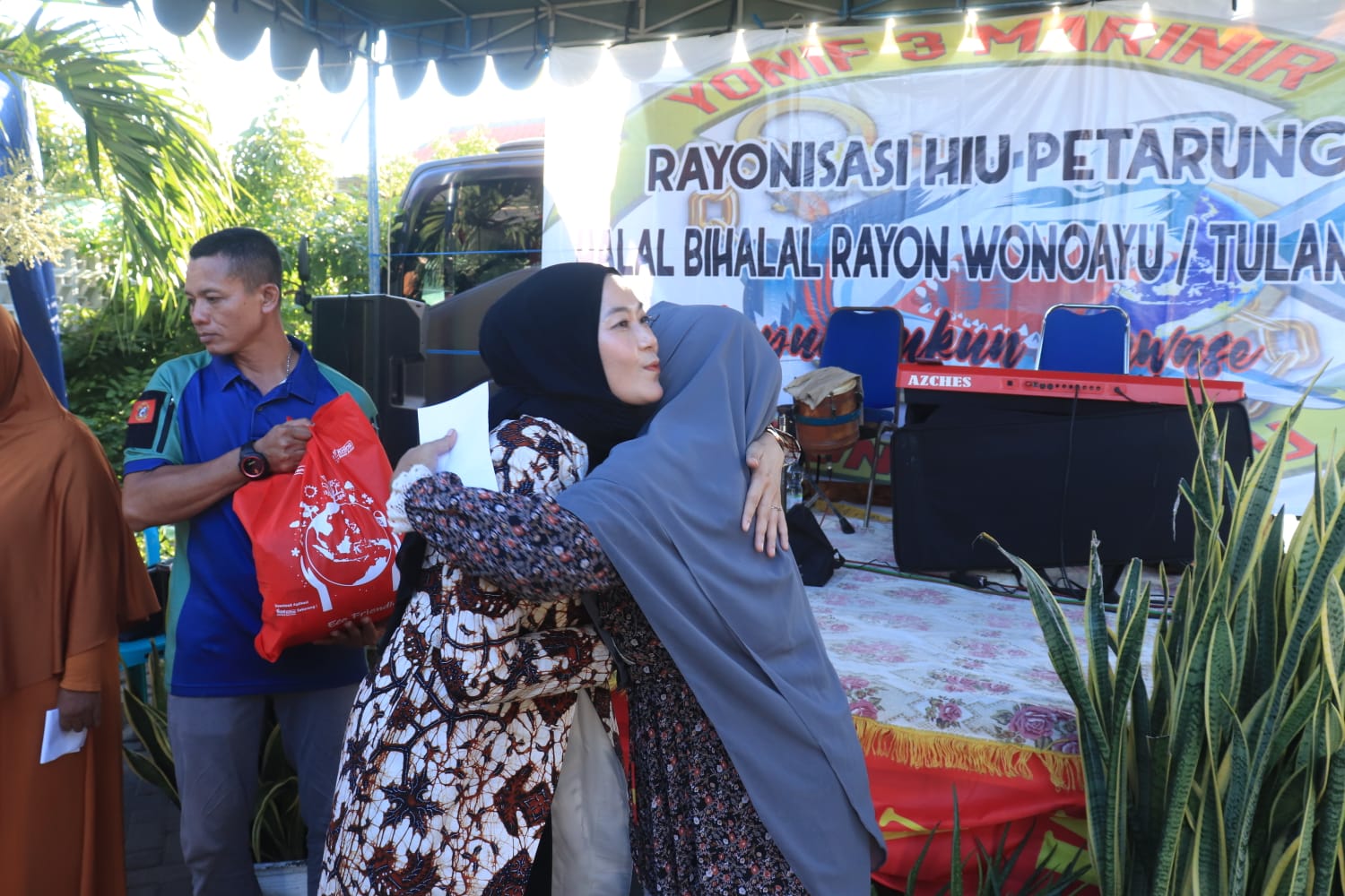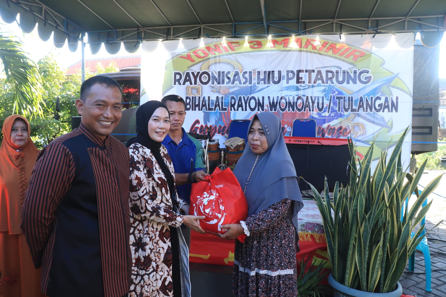 TNI AL, Dispen Kormar (Sidoarjo) Dalam rangka mempererat tali silaturahmi, Komandan Batalyon Infanteri 3 Marinir Letkol Marinir Adid Kurniawan Wicaksono, M.Tr.Opsla didampingi Ketua Ranting C Cabang 2 Korcab Pasmar 2 Ny. Adid Kurniawan Wicaksono menghadiri kegiatan Halal Bihalal prajuritnya yang berada di Rayon Tulangan dan Wonoayu bertempat di Perumahan Taman Surya Kencana Tulangan, Sidoarjo, Jawa Timur. Sabtu (27/04/2024).