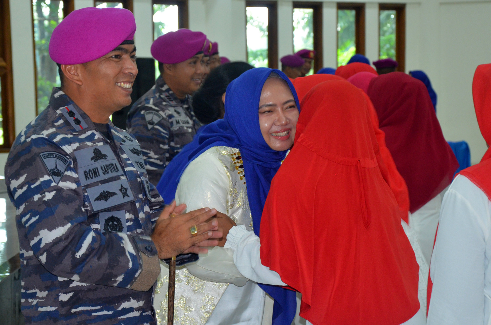 TNI AL, Dispen Kormar (Sidoarjo) Dalam rangka mempererat tali silaturahmi, Komandan Batalyon Infanteri 1 Marinir Letkol Marinir Roni Saputra, M.Tr.Opsla., didampingi Ketua Ranting B Cabang 2 Korcab Pasmar 2 Ny. Zelvi Roni Saputra melaksanakan halal bihalal dengan anggota Jalasenastri Ranting B Cabang 2 Korcab Pasmar 2 di Bapra Kesatrian Marinir R. Suhadi Gedangan, Sidoarjo, Jawa Timur. Jumat (26/04/2024).