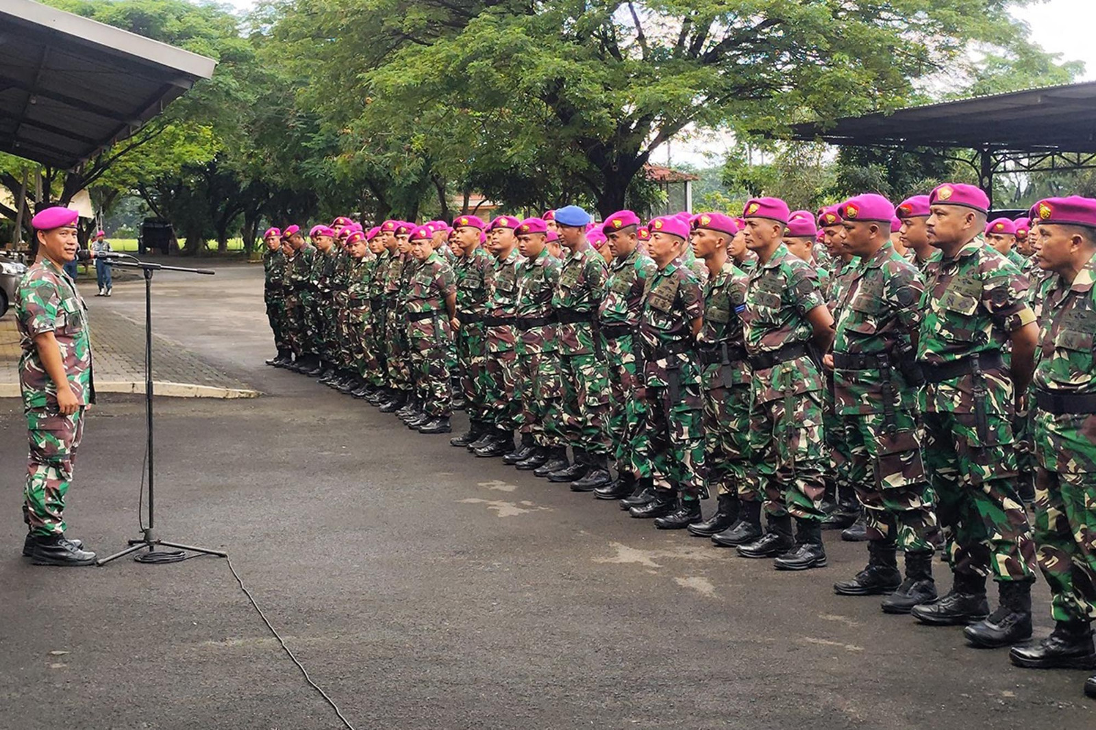 TNI AL, Dispen Kormar (Sidoarjo) Prajurit Batalyon Infanteri 1 Marinir melaksanakan pengecekan personel oleh Asops Danpasmar 2 Kolonel Marinir Joko Fitrianto dalam rangka persiapan Satgas Puter XXVIII dan Satgas Ambalat XXX di Mako Pasmar 2 Kesatrian Marinir Moekijat, Gedangan, Sidoarjo, Jawa Timur. Jumat (26/04/2024).