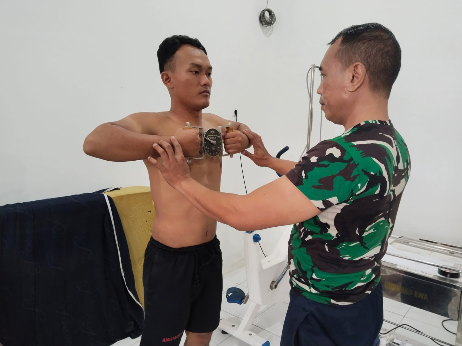 TNI AL, Dispen Kormar (Surabaya) Sebagai upaya deteksi dini dan antisipasi terhadap kesehatan tubuh, prajurit Batalyon Angkutan Bermotor 2 Marinir (Yonangmor 2 Mar) melaksanakan Uji Pemeriksaan Kesehatan Kemampuan Tempur (Urikes Puanpur) di Rumah Sakit Marinir Ewa Pangalila Gunungsari, Surabaya, Kamis (25/04/2024).