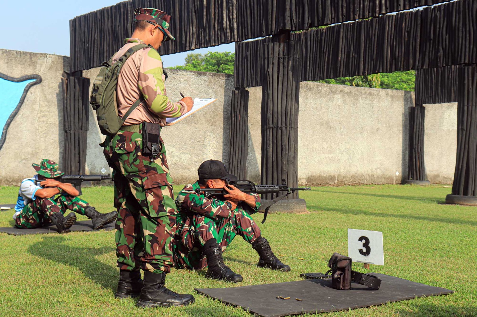 TNI AL, Dispen Kormar (Surabaya) Dalam rangka memperingati Hari Pendidikan TNI Angkatan Laut (Hardikal) ke 78 tahun 2024, Prajurit Batalyon Infanteri 3 Marinir mengikuti mengikuti lomba Tembak Tempur Offensif (TTO) dan Tembak Tempur Defensive (TTD) di lapangan tembak J.W Kaimana Kodiklatal Bumimoro Surabaya. Kamis (02/05/2024).