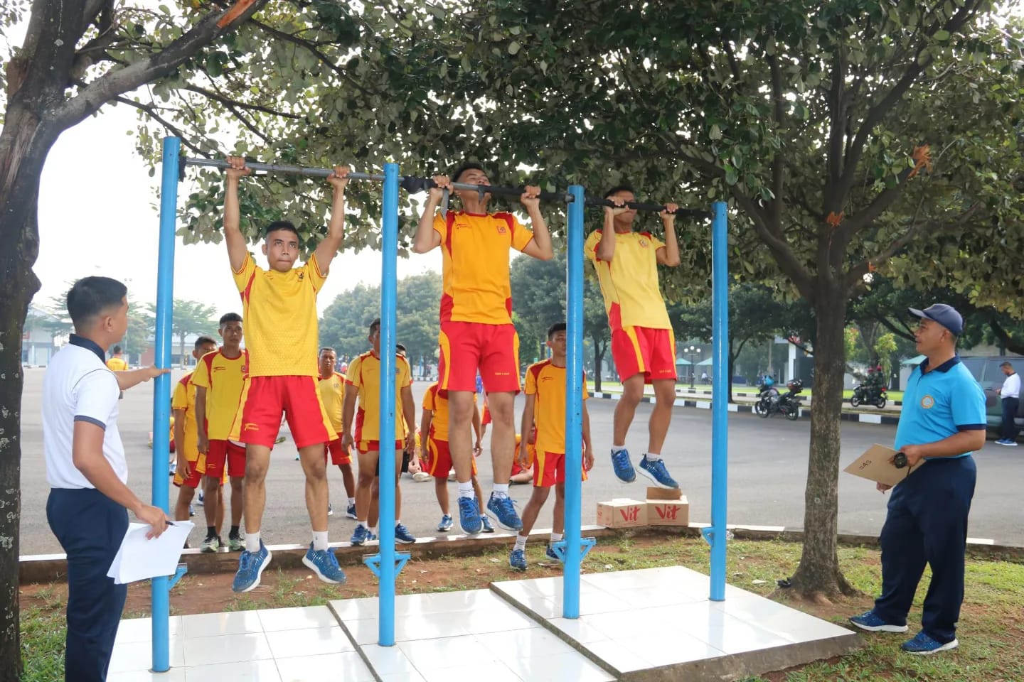 Pelaksanaan tes kesegaran jasmani diawasi oleh tim Garjas Brigif 1 Marinir dengan materi meliputi tes baterai "A" yaitu lari selama 12 menit dan tes baterai "B" yaitu pull up, sit up, push up, dan shuttle run serta renang dasar dengan jarak 50 meter.