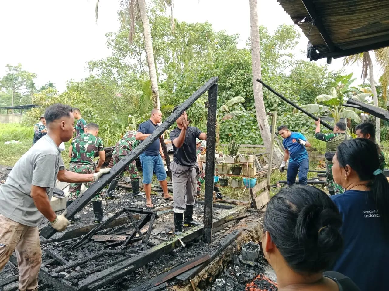 Guna meringankan beban yang ada, Komandan Yonmarhanlan XIV Mayor Marinir Andi Muhammad Yusuf, M.Tr.Opsla memerintah prajurit Yonmarhanlan XIV Sorong melaksanakan bakti sosial dengan membersihkan sisa puing-puing kebakaran.