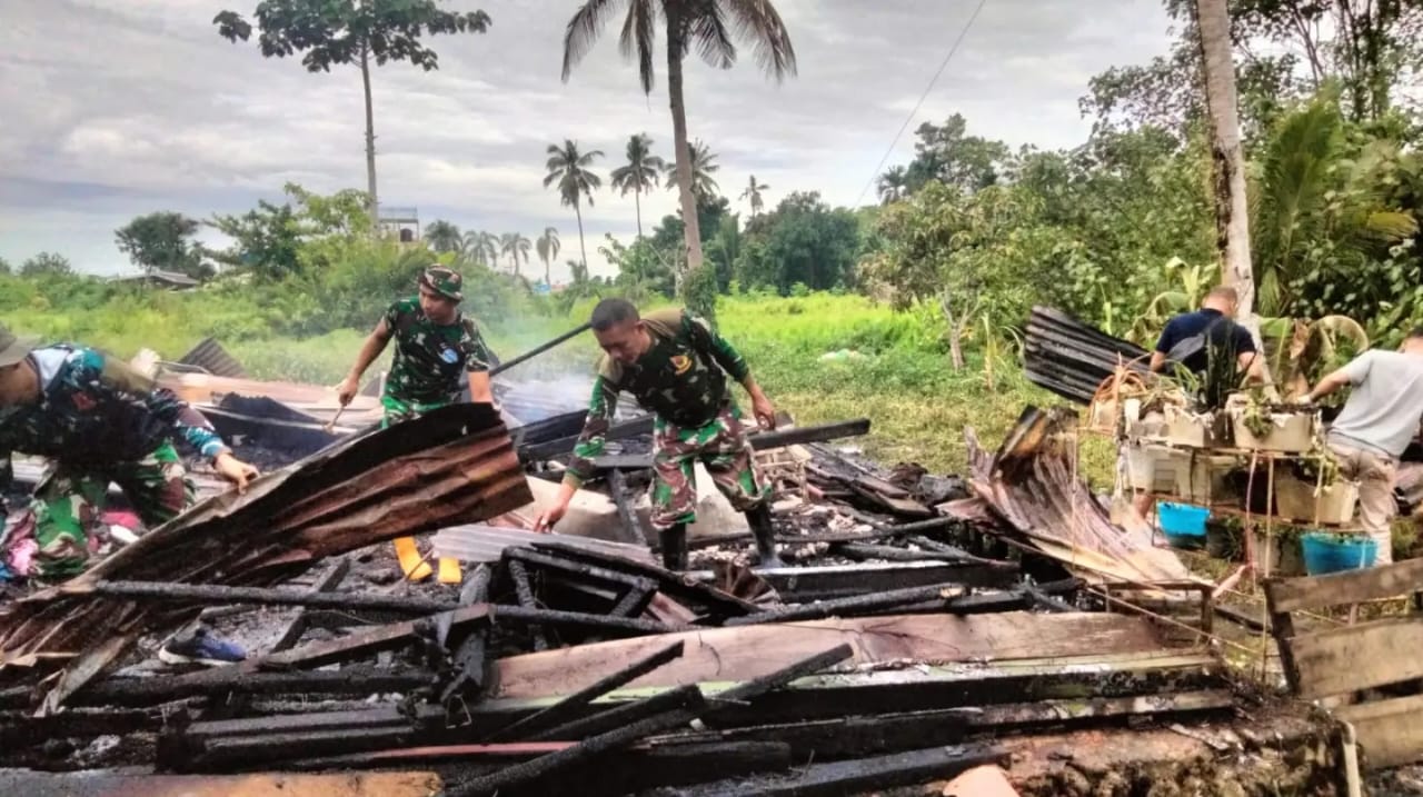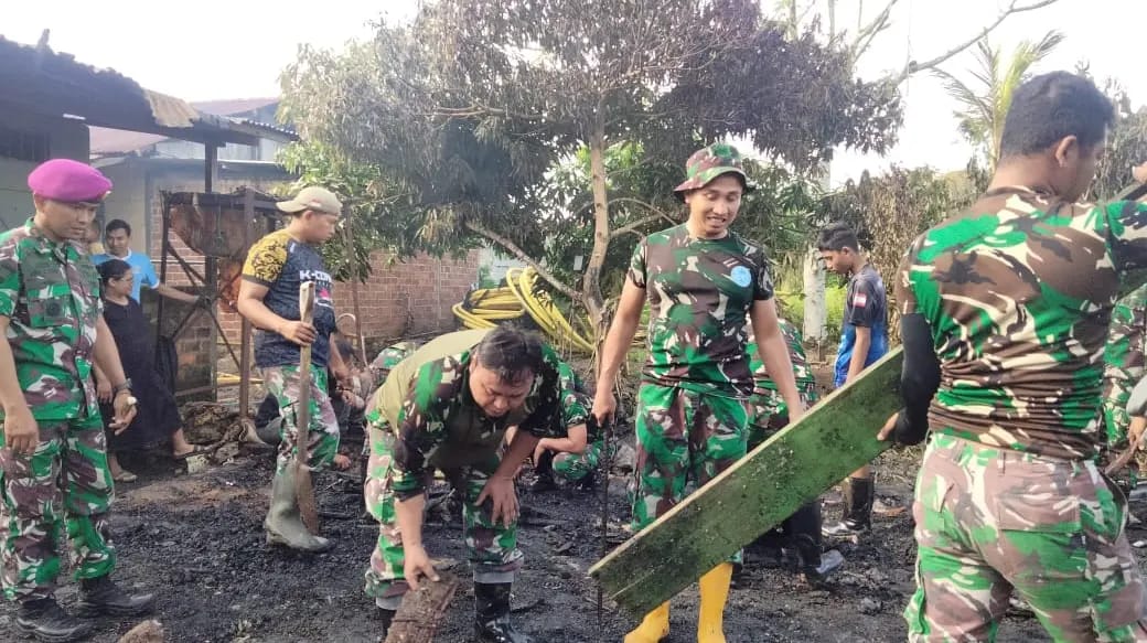 Prajurit Yonmarhanlan XIV Sorong Bersihkan Puing Musibah Kebakaran