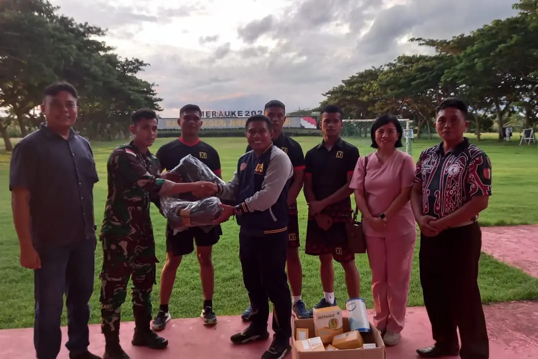 TNI AL, Dispen Kormar (Merauke). Dalam rangka meningkatkan prestasi dan semangat atlet Pengda Muaythai Kabupaten Merauke melaksanakan kunjungan dan memberikan kelengkapan peralatan Muaythai serta Suplemen protein di Sasana Buaya Muara Yonmarhanlan XI Merauke, bertempat di Mako Yonmarhanlan XI, Jl. Diko 1 Trans Irian Wasur, Rimba Jaya, Kab. Merauke, Papua Selatan. Selasa (23/04/2024).