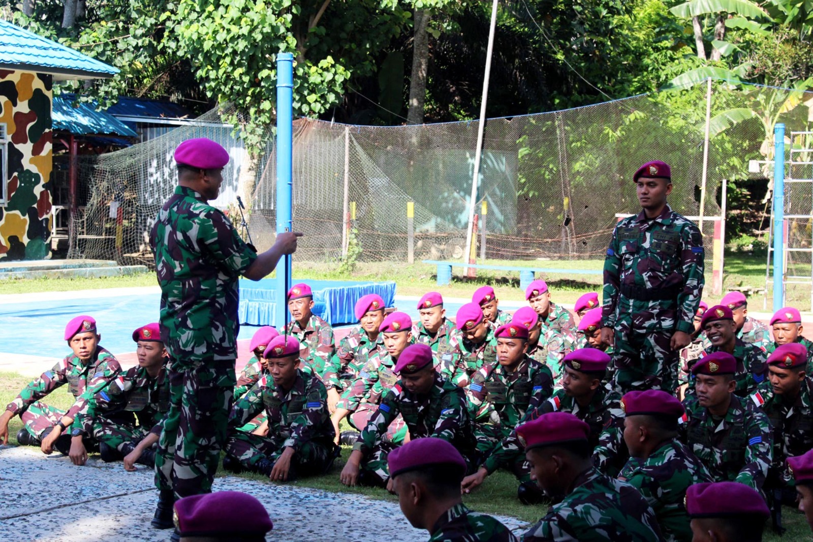 âLaksanakan tugas-tugas yang diemban dengan penuh semangat, jaga kesehatan, jaga moril karena waktu penugasan tinggal sebentar lagi serta selalu laksanakan pembinaan fisik. Jangan membuat pelanggaran sekecil apapun yang bisa merusak nama baik keluarga, satuan, bangsa dan negara,ââ pungkas Danpasmar 2.