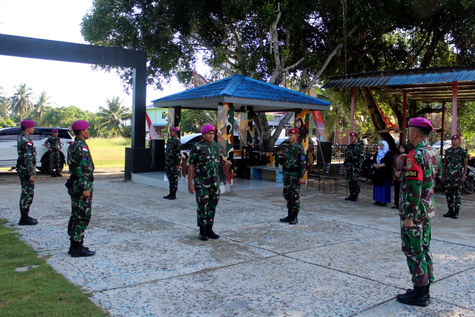 Kedatangan Komandan Pasmar 2 yang didampingi Asops Danpasmar 2 Kolonel Marinir Joko Fitrianto, Aspers Danpasmar 2 Kolonel Marinir Suroso, M.Tr.Opsla, Aslog Danpasmar 2 Kolonel Marinir Bayu Aji Alambhana Wannaw W. dan Danyonmarhanlan XIII Tarakan, Letkol Marinir Andreas Sony Tangi Timbang, M. Tr. Opsla di Pulau Sebatik disambut langsung oleh Dansatgasmar Pam Ambalat XXIX Lettu Mar Presly Brisky Musak S.,T.Han di pelabuhan Bambangan.