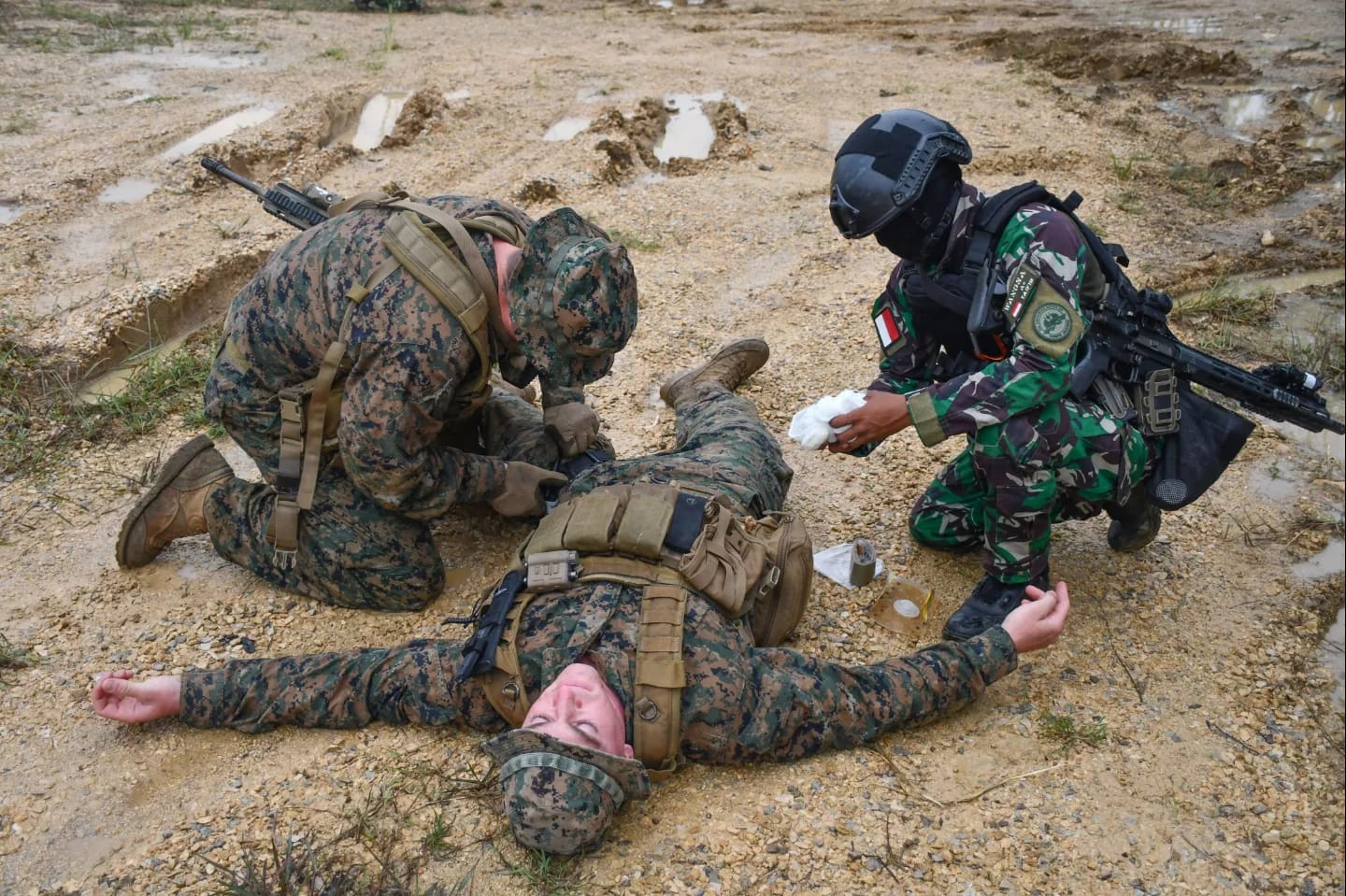 Taifib Marinir dan US Marine Force Recon Berlatih Tactical Combat Casualty Care