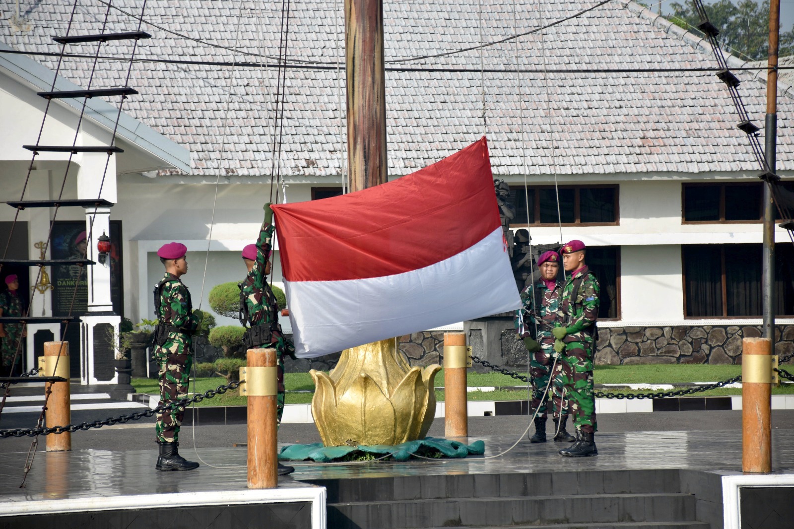 Tampil Perdana Danmenart 2 Mar Pimpin Upacara Penaikan Bendera Senin Minggu IV April 2024.