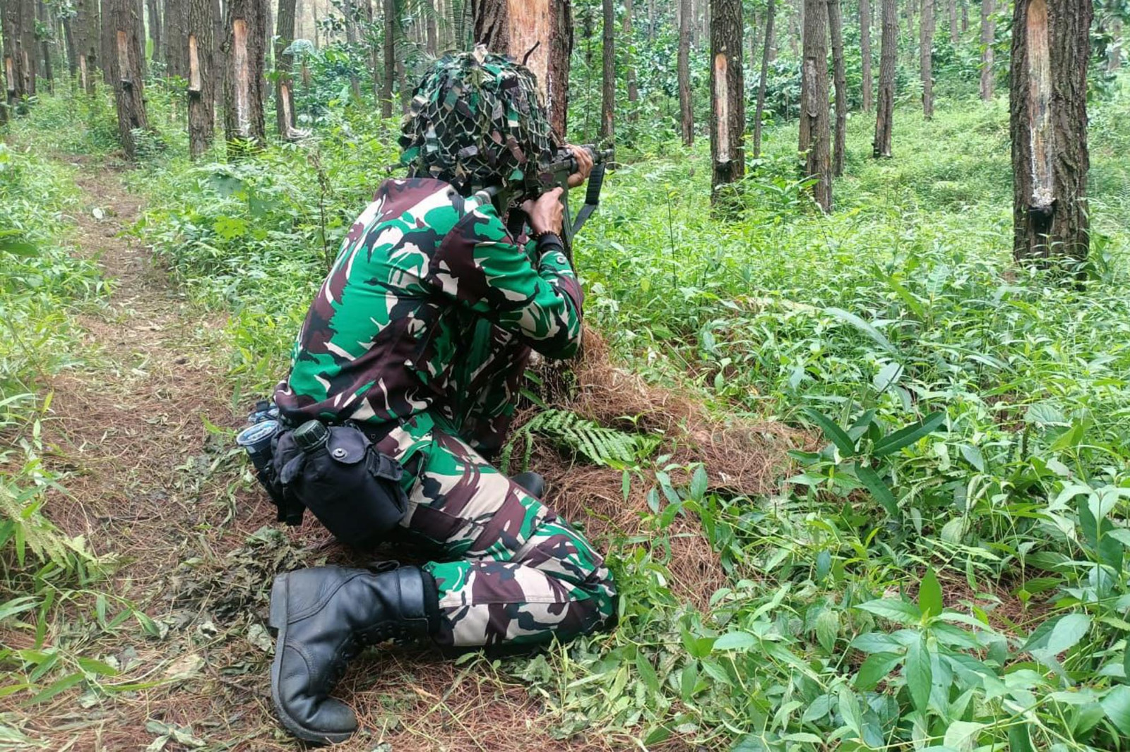 TEMBAK TEMPUR LORONG REAKSI LENGKAPI LATIHAN PRAJURIT YONIF 1 MARINIR DI HUTAN GUNUNG LAWU