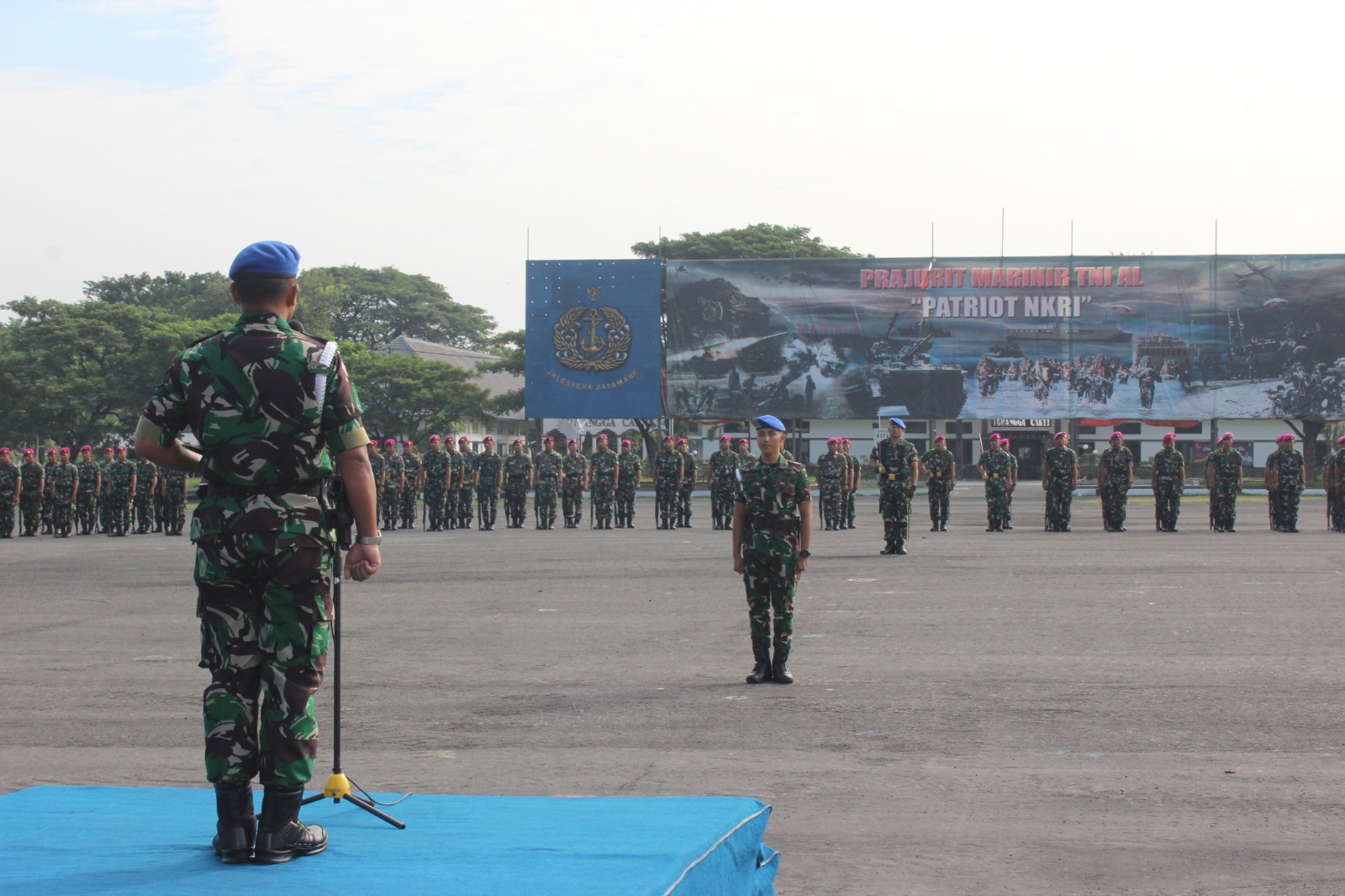 TNI AL, Dispen Kormar (Surabaya). Dalam rangka mengimplementasikan nilai-nilai Trisila TNI AL, salah satunya dengan menggelar upacara bendera yang merupakan pelaksanaan Perintah Harian Sifat Tetap (PHST) dan kehidupan tradisi yang mencerminkan pemahaman, penghayatan dan pengamalan Trisila TNI AL, prajurit Batalyon Polisi Militer 2 Marinir melaksanakan Upacara pengibaran bendera hari senin di lapangan Hitam Kesatrian Marinir Soetedi Senaputra, Karangpilang Surabaya. Senin (06/05/2024)