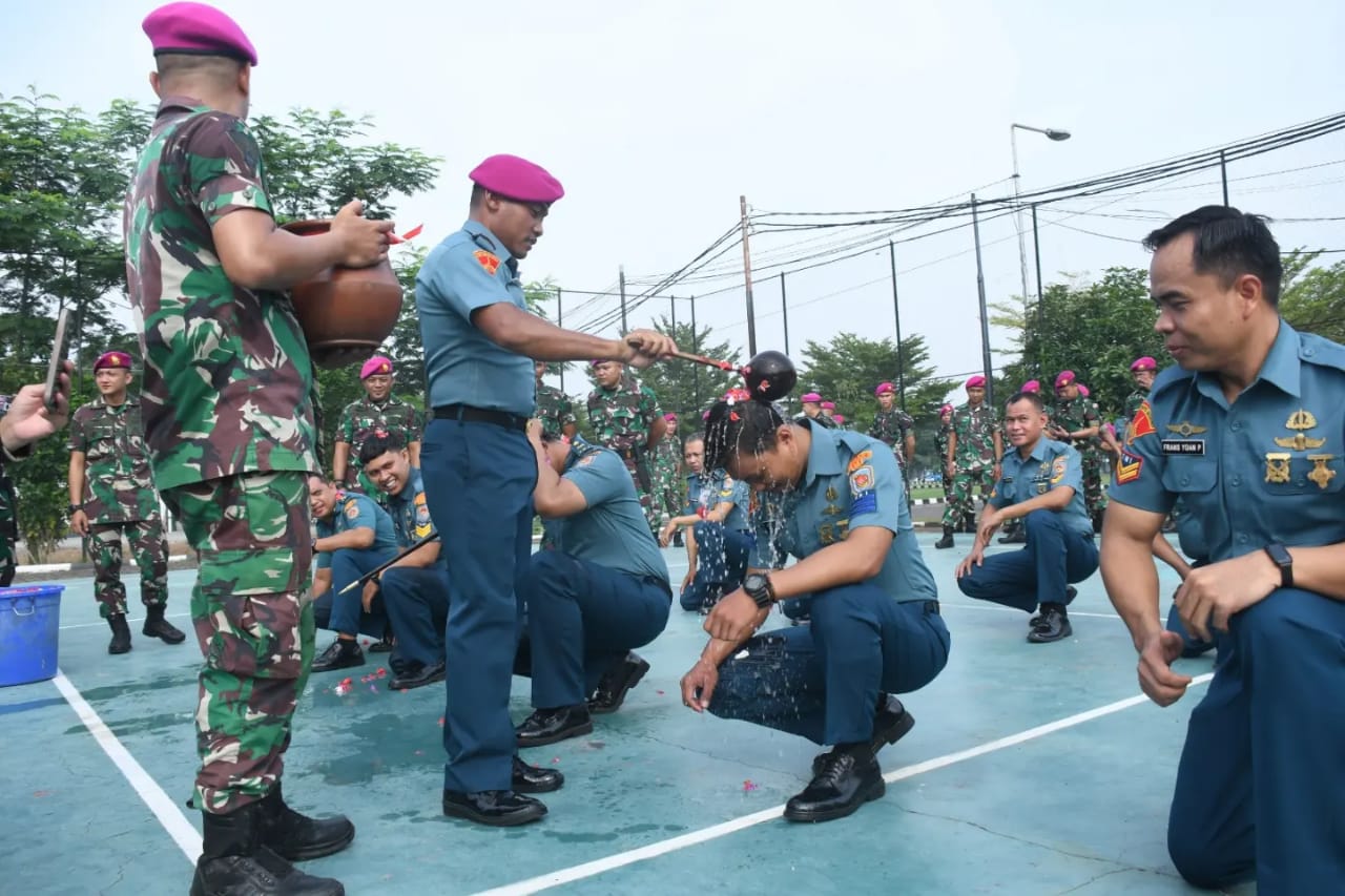 TNI AL, Dispen Kormar (Jakarta), Pasmar 1. Komandan Detasemen Markas (Dandenma) Pasmar 1 Mayor Marinir Ringga Widyatama M.Tr. Opsla., memimpin upacar Kenaikan Pangkat (Kenkat) periode 1 April 2024 dan Acara purna tugas prajurit Pasmar 1 bertempat di lapangan Apel Denmako Pasmar 1, Kesatrian Marinir Baroto Sardadi, Marunda, Jakarta Utara, Kamis (02/05/2024).
