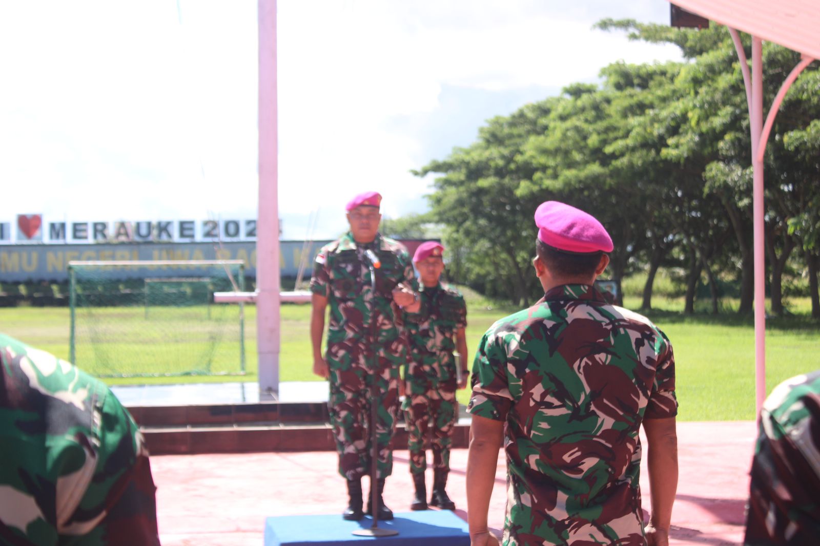 Upacara Penyambutan Kedatangan Perwira Baru Yonmarhanlan XI Merauke