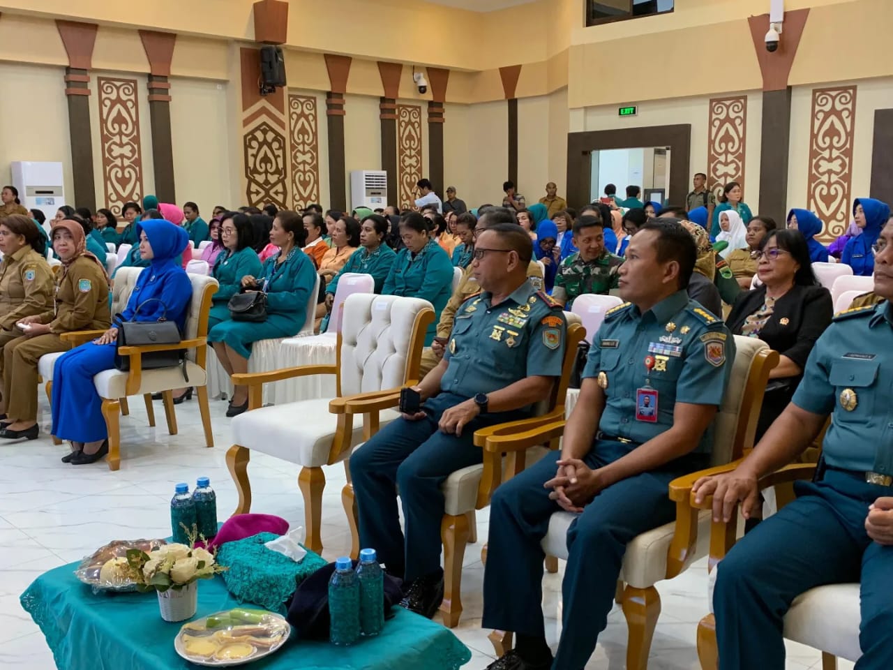 TNI AL, Dispen Kormar Sorong. Wakil Komandan Pasmar 3 Kolonel Mar David Candra Viasco, S.E., M.M., M.Sc., didampingi Wakil Ketua Korcab Jalasenastri Pasmar 3 Ny. Ratih David Candra Viasco menghadiri peringatan Hari Kesatuan Gerak (HKG) Pemberdayaan Kesejahteraan Keluarga (PKK) Provinsi Papua Barat Daya ke-52 tahun 2024 di ruang rapat utama Kantor Gubernur Papua Barat Daya, Lt.3, Jl. Burung Kurana, Kel. Remu Utara, Kota Sorong, Papua Barat Daya. Senin (06/05/2024).