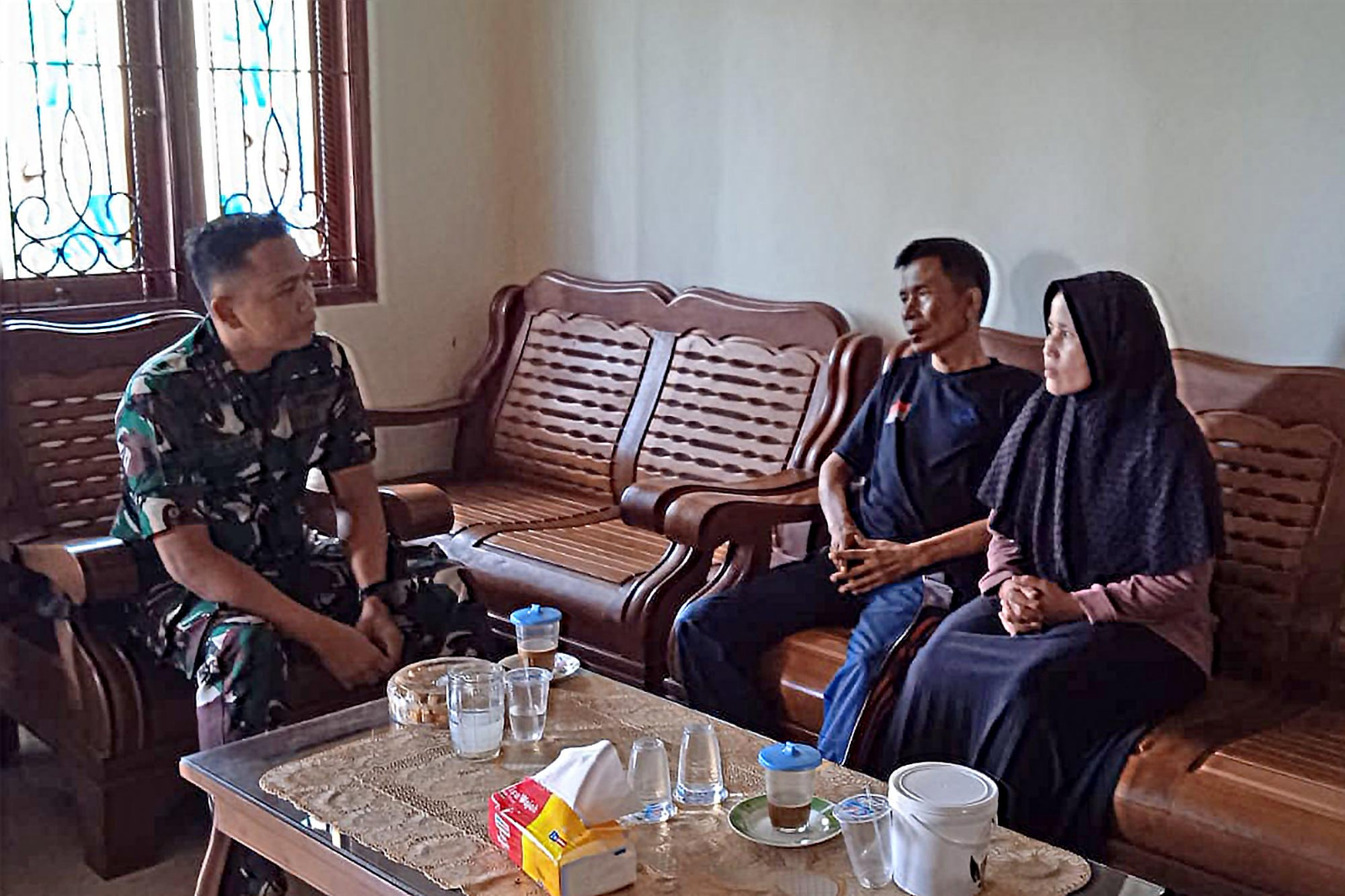 Disela-sela kesibukannya, Perwira Kesehatan Letda Laut (K) Catur Agus Puji Wahyudi, A.Md.Kep menyempatkan diri untuk menjenguk anggotanya yang sedang sakit yaitu Serma Rum Edi Suroso, anggota Peleton Kesehatan Batalyon Infanteri 3 Marinir.