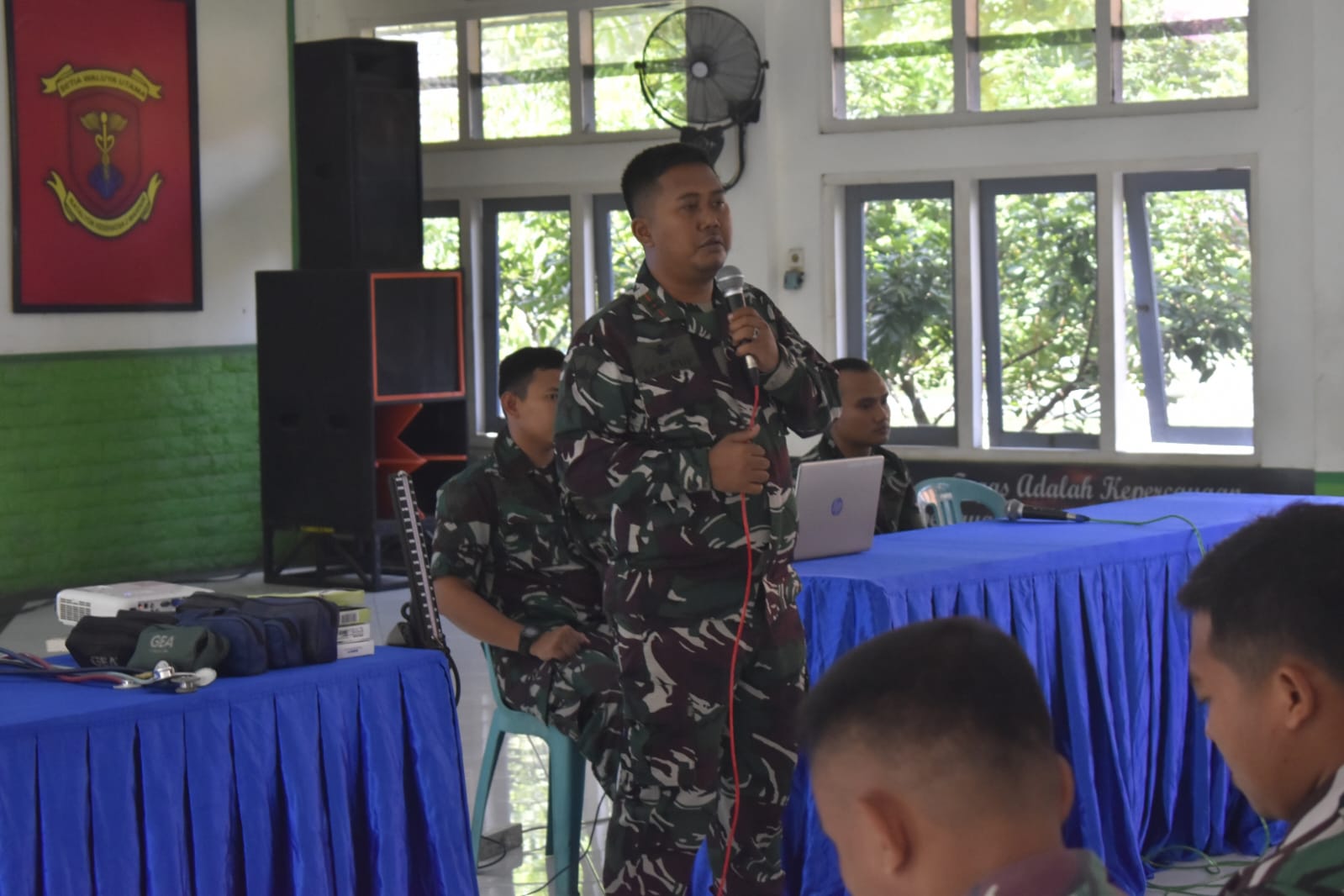 Yonkes 2 Marinir Berikan Materi Pelatihan Penggunaan Alat Tensi Kepada Perwakilan Prajurit Dibawah Jajaran Pasmar 2